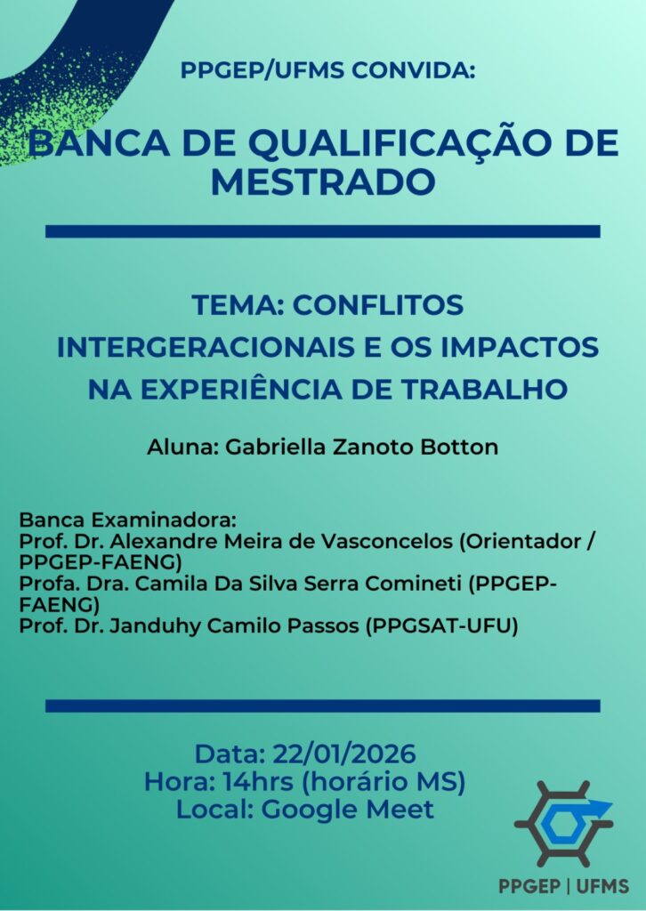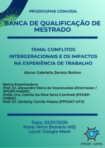 O Programa de Pós-Graduação em Engenharia de Produção da UFMS convida a comunidade acadêmica para a Banca de Qualificação de Mestrado da aluna Gabriella Zanoto Botton.