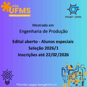 Estão abertas as inscrições para o Processo Seletivo de alunos especiais do curso de pós-graduação em Engenharia de Produção da FAENG. O processo é destinado a candidatos com diplomas de graduação que podem concorrer para cursar até 2 disciplinas no primeiro semestre de 2026. Confira abaixo o edital: